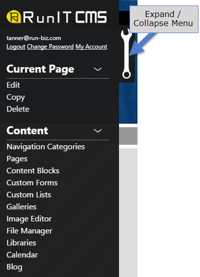Once you are logged in you will see a ‘Wrench’ appear in the top left of your screen.